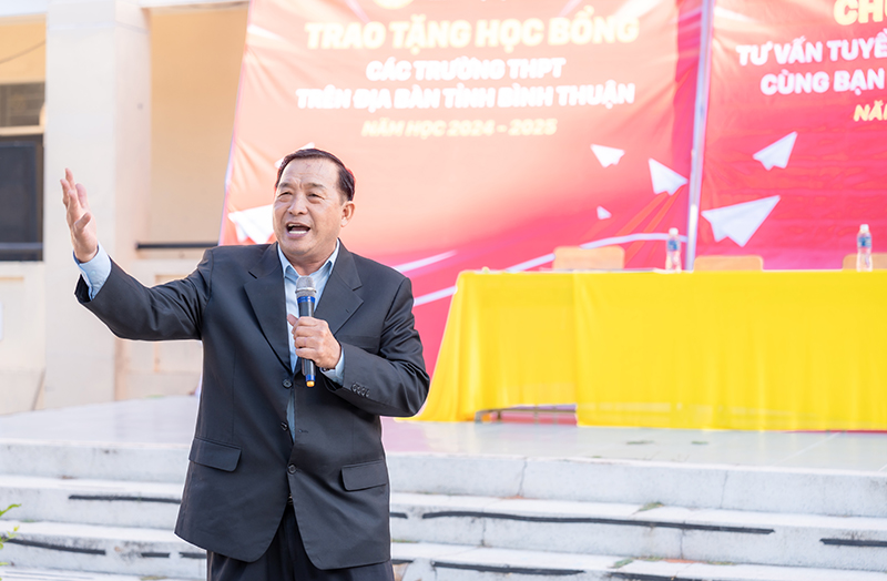 Đại diện trường Phổ thông Dân tộc Nội trú tỉnh Bình Thuận, Thầy Lương Đào Quốc Dũng – Hiệu trưởng Nhà trường dành lời cảm ơn chân thành đến trường Đại học Phan Thiết đã luôn quan tâm đến thế hệ trẻ tỉnh nhà qua việc tổ chức nhiều chương trình tư vấn hướng nghiệp, tuyển sinh bổ ích cho các em. Hiệu trưởng hy vọng, qua chương trình, các em học sinh toàn trường đã có thể phần nào hình thành được những định hướng đúng đắn cho quá trình học tập và phát triển nghề nghiệp trong tương lai.