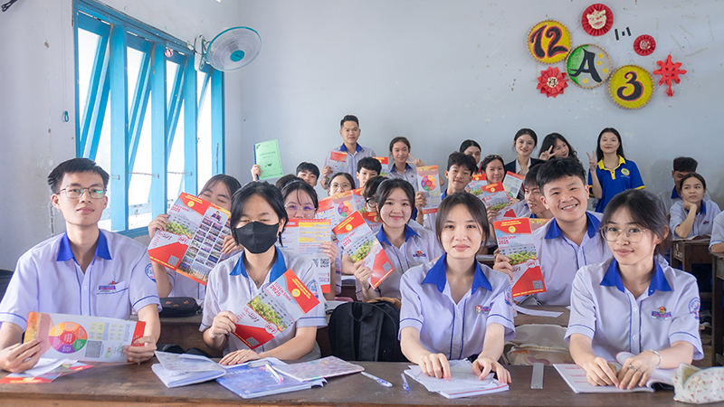 Tại đây, Đoàn tổ chức buổi tư vấn trực tiếp tại từng lớp 12, cung cấp thông tin chi tiết về các ngành học, cơ hội nghề nghiệp và các chính sách học bổng hấp dẫn của trường năm 2025. Các em học sinh lớp 12 đã được giải đáp tận tình nhiều câu hỏi liên quan đến con đường học tập tương lai, từ đó giúp các em có cái nhìn rõ ràng hơn về lựa chọn nghề nghiệp của bản thân mình.