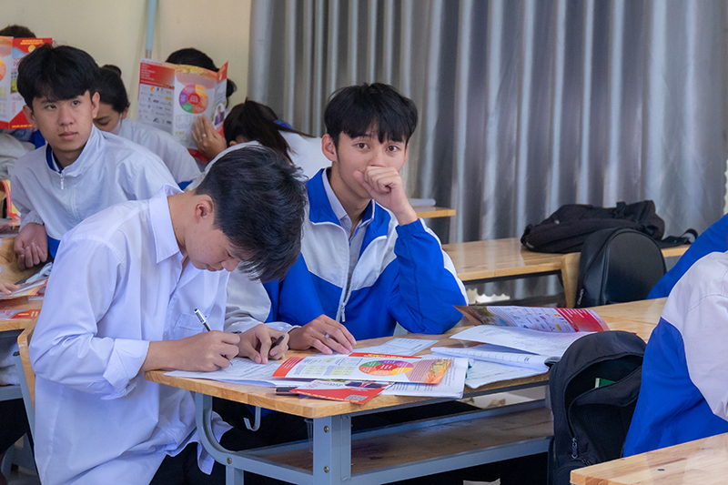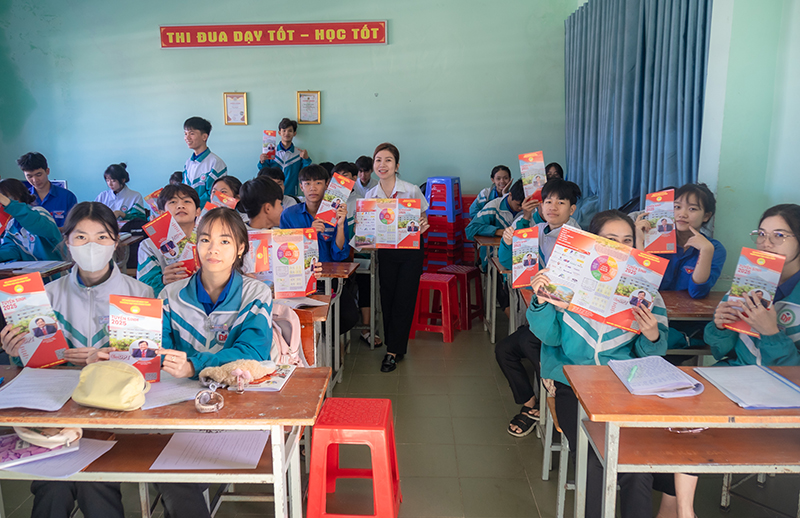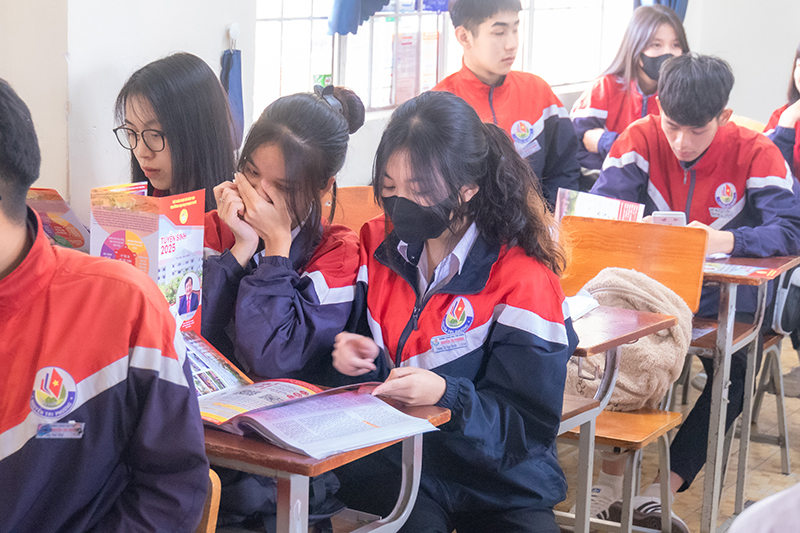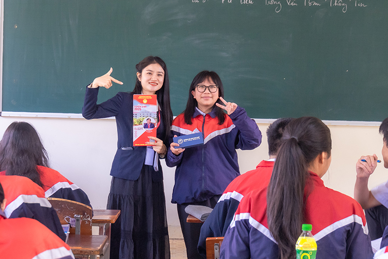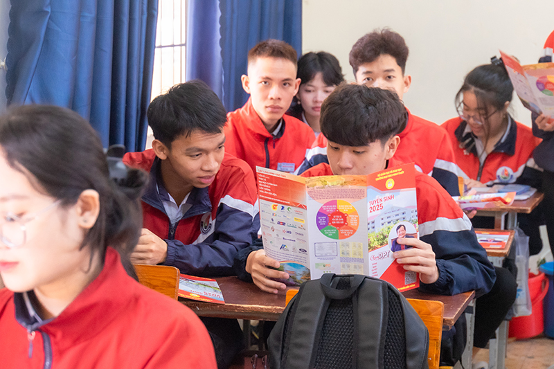 Trong buổi tư vấn, Đoàn đã chia sẻ với các em học sinh lớp 12 tại các trường về ba phương thức xét tuyển của trường Đại học Phan Thiết trong năm 2025, bao gồm: dựa vào kết quả kỳ thi tốt nghiệp THPT năm 2025, kết quả học bạ THPT và kết quả kỳ thi đánh giá năng lực do Đại học Quốc gia TP.HCM tổ chức.