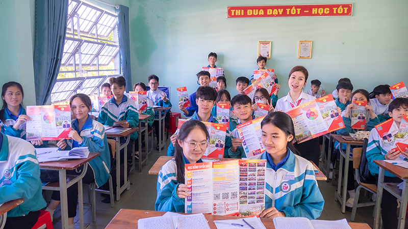 Đồng thời, Đoàn cũng đã giới thiệu về các ngành nghề tiềm năng và 5 chương trình học bổng hấp dẫn dành cho tân sinh viên năm 2025 nhập học vào tất cả các chuyên ngành của trường Đại học Phan Thiết.