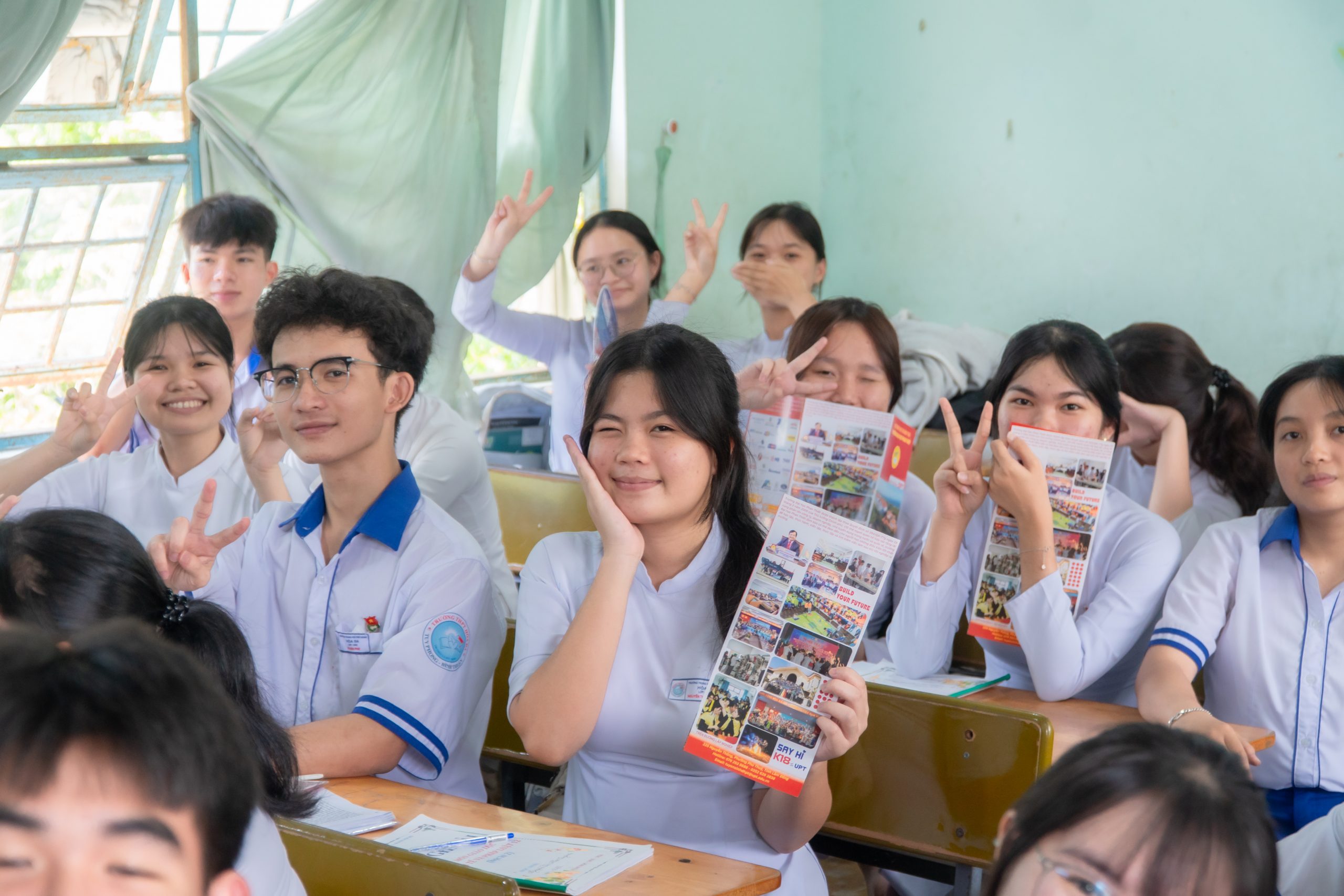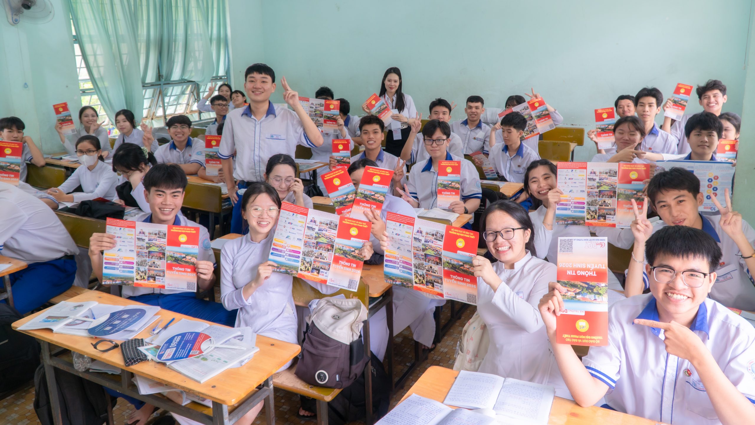 Tại các buổi tư vấn, không khí diễn ra sôi nổi với sự tham gia nhiệt tình của đông đảo học sinh lớp 12. Không chỉ được cung cấp thông tin tuyển sinh năm 2026 của Trường Đại học Phan Thiết, các em còn có cơ hội tiếp cận những góc nhìn thực tế về môi trường học tập hiện đại, cùng định hướng đào tạo gắn liền với trải nghiệm và ứng dụng thực tiễn tại UPT.