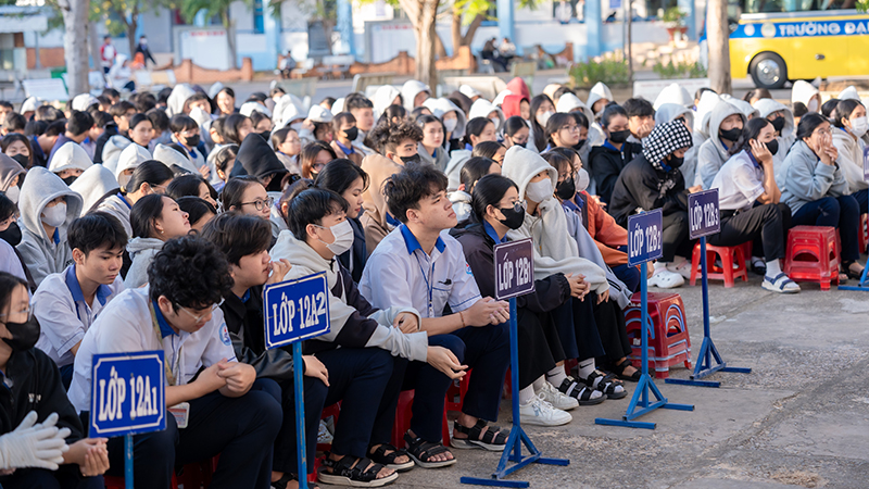Representing Bui Thi Xuan – Mui Ne High School were Mr. Ta Hoang Anh, the Principal, together with the teaching staff, administrative officers, and all Grade 12 students of the school.