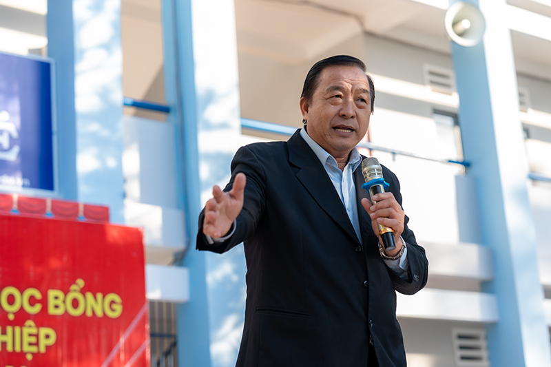 Mr. Ta Hoang Anh – Principal of Bui Thi Xuan High School – Mui Ne, speaking at the program