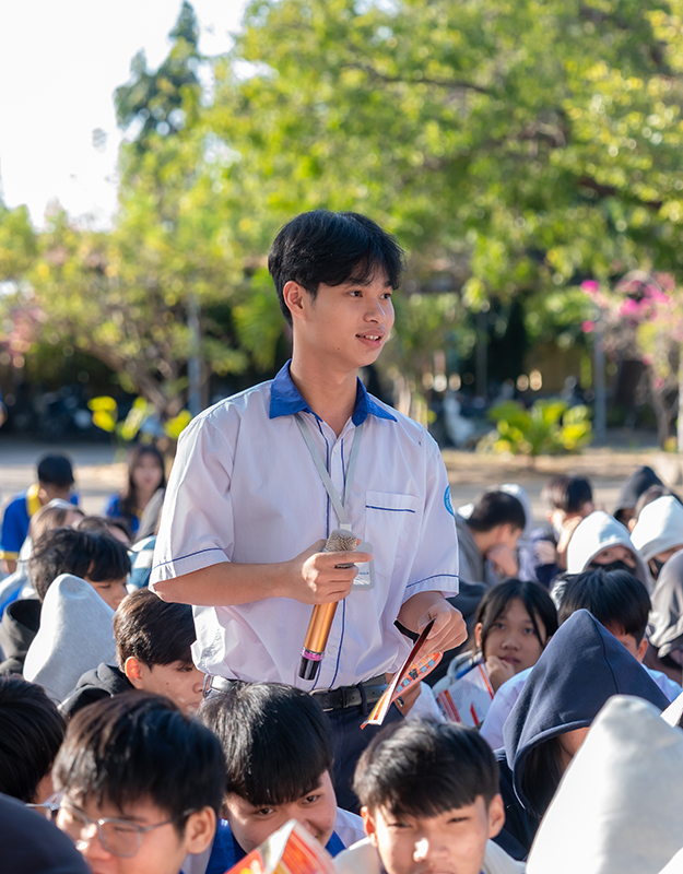 A former student of Bui Thi Xuan – Mui Ne High School, currently a student at University of Phan Thiet, sharing at the program