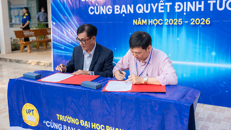 Sáng ngày 19/01/2026, Trường Đại học Phan Thiết (UPT) đã tổ chức chương trình tư vấn hướng nghiệp kết hợp lễ ký kết hợp tác toàn diện với Trường THPT Nguyễn Thị Minh Khai. Chương trình nhằm đồng hành cùng học sinh khối 12 trong quá trình định hướng nghề nghiệp, lựa chọn ngành học phù hợp và tiếp cận các chính sách hỗ trợ người học của UPT trước thềm kỳ tuyển sinh đại học.