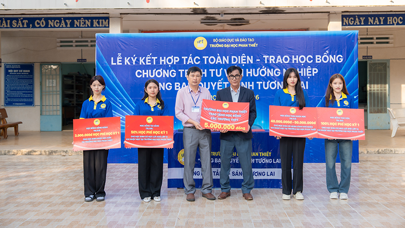 Nhân dịp này, Trường Đại học Phan Thiết đã trao tặng 5.000.000 đồng vào Quỹ học bổng của Trường THPT Nguyễn Thị Minh Khai. Bên cạnh đó, UPT cam kết dành các suất học bổng đầu vào không giới hạn cho học sinh của Nhà trường khi đăng ký xét tuyển vào bất kỳ ngành đào tạo nào tại Trường Đại học Phan Thiết trong kỳ tuyển sinh năm 2026, với giá trị học bổng từ 3.000.000 đồng đến 50.000.000 đồng cho toàn khóa học.