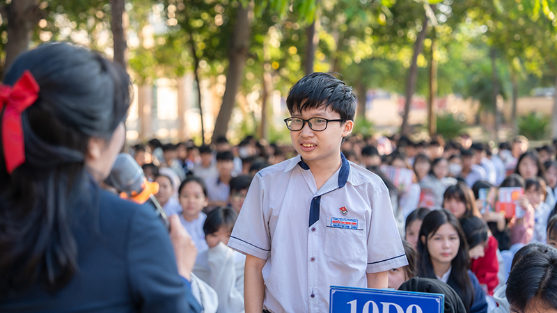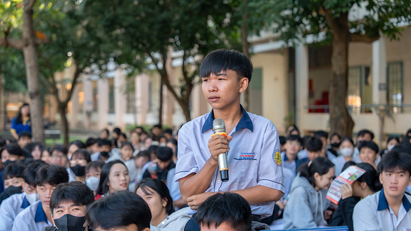 Students of Nguyen Thi Minh Khai High School participating in the discussion