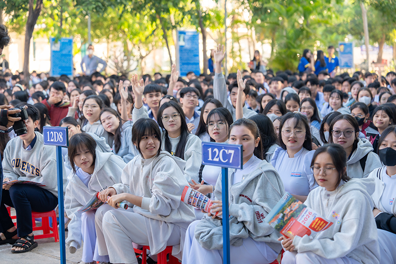 The atmosphere of the program became even more lively during the interactive Q&A session between students and representatives of the University of Phan Thiet. Numerous questions related to admission methods, employment opportunities, scholarship policies, and the learning environment were clearly and thoroughly addressed.