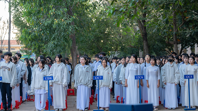 Tham dự chương trình, về phía Trường THPT Nguyễn Thị Minh Khai có sự hiện diện của Thầy Võ Hoài Khiêm – Hiệu trưởng Nhà trường, tập thể cán bộ, giáo viên cùng toàn thể học sinh khối 12.