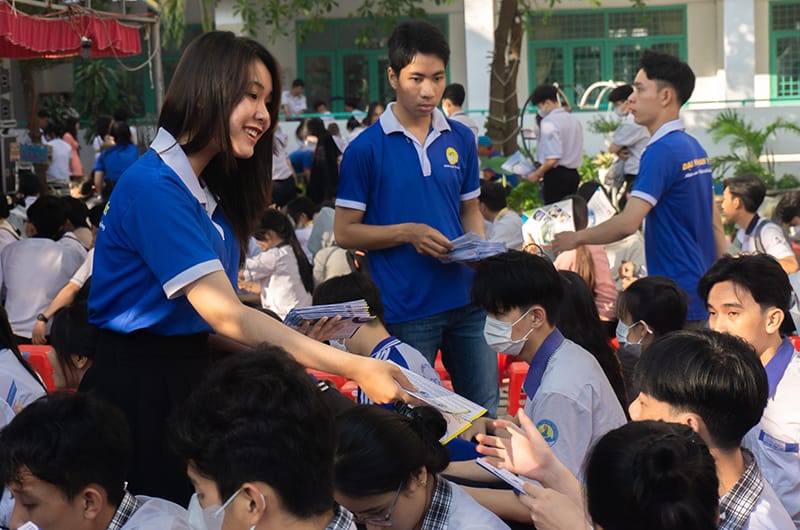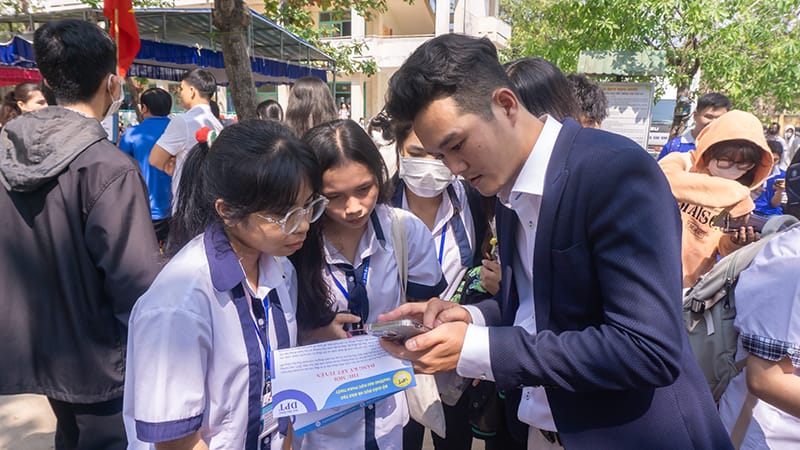 In the very exciting atmosphere of the program, students at high schools asked many questions to be answered and advised by the Advisory Board in general and representatives of Phan Thiet University in particular. After the live broadcast, the UPT staff and students stayed for a long time to advise the students, helping them grasp the most important information before entering the university entrance exam. learn.