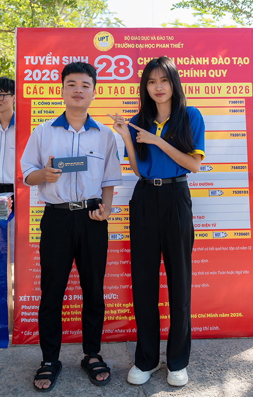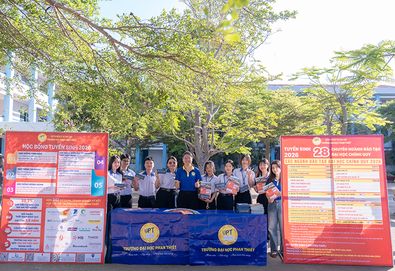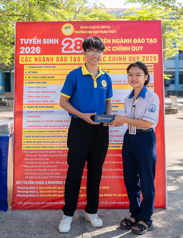 Tại gian hàng tư vấn hướng nghiệp UPT, đội ngũ giảng viên và cán bộ tư vấn tuyển sinh đã chia sẻ nhiều thông tin hữu ích về các ngành đào tạo thế mạnh của Trường Đại học Phan Thiết, đồng thời cập nhật những xu hướng nghề nghiệp mới trong bối cảnh chuyển đổi số và hội nhập. Không chỉ giới thiệu ngành học, Đoàn Tuyển sinh UPT còn giúp học sinh hiểu rõ hơn về lộ trình học tập, các kỹ năng cần trang bị, cũng như chính sách học phí – học bổng hấp dẫn trong suốt quá trình học tập tại Trường Đại học Phan Thiết. Những thắc mắc xoay quanh tuyển sinh, xét tuyển và cơ hội việc làm sau tốt nghiệp của học sinh Trường THPT Bùi Thị Xuân – Mũi Né đều được giải đáp tận tình, giúp các em thêm tự tin khi đưa ra lựa chọn cho tương lai.