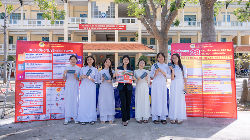 Trong khuôn khổ chương trình Tư vấn hướng nghiệp, ngày 08/12/2025, Đoàn tuyển sinh Trường Đại học Phan Thiết (UPT) đã mang đến Trường THPT Bắc Bình một gian hàng tư vấn hướng nghiệp sôi nổi và đầy hữu ích dành cho học sinh khối 10, 11 và 12.