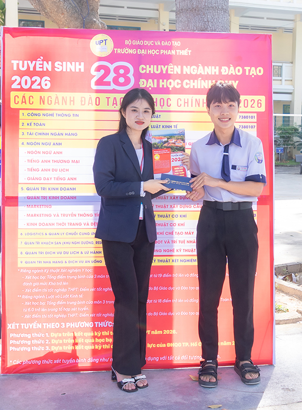 Chương trình tư vấn tại Trường THPT Bắc Bình là dịp để Đoàn tuyển sinh UPT lắng nghe nguyện vọng của học sinh, đồng thời hỗ trợ các em định hướng nghề nghiệp phù hợp với năng lực, sở thích và mục tiêu cá nhân. Hy vọng rằng những thông tin và trải nghiệm nhận được từ chương trình sẽ giúp các em tự tin hơn trong quá trình chuẩn bị cho kỳ xét tuyển đại học năm 2026.