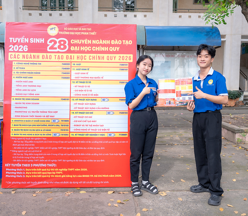 Sáng ngày 28/11/2025, trong khuôn khổ Chương trình Tư vấn hướng nghiệp tại Trường THPT Nguyễn Văn Linh, Đoàn tuyển sinh Trường Đại học Phan Thiết (UPT) đã triển khai gian hàng tư vấn trực tiếp dành cho học sinh tại trường.