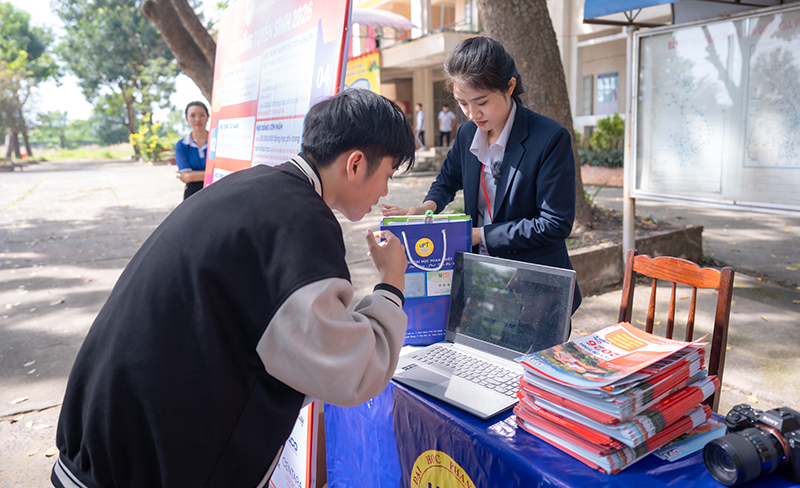Tại gian hàng, Đoàn tuyển sinh UPT đã cung cấp thông tin chi tiết về các ngành nghề đào tạo của trường, xu hướng nghề nghiệp trong thời đại mới, đặc điểm của từng nhóm ngành cũng như cơ hội việc làm sau khi tốt nghiệp. Các em học sinh được giải đáp cặn kẽ những thắc mắc liên quan đến ngành học mình quan tâm, qua đó có thêm cơ sở để lựa chọn ngành nghề phù hợp và chính xác nhất cho kỳ xét tuyển đại học năm 2026.