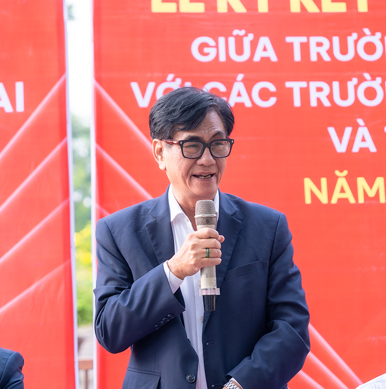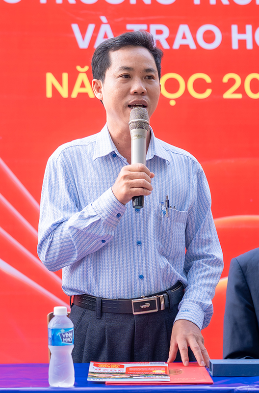 Thầy Lương Khắc Sinh – Hiệu trưởng Trường THPT Nguyễn Văn Linh phát biểu tại chương trình