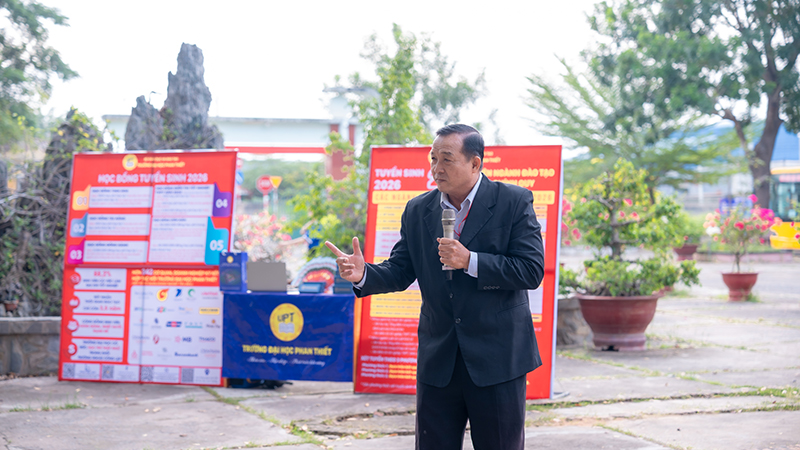 Trong buổi tư vấn, TS. Trịnh Thanh Toản – Trưởng khoa Ngoại ngữ Trường Đại học Phan Thiết nhấn mạnh tầm quan trọng của việc lựa chọn ngành nghề phù hợp với năng lực và sở thích của từng học sinh, đồng thời phân tích rõ đặc điểm và yêu cầu của một số lĩnh vực nghề nghiệp tiêu biểu. Qua đó, TS. Trịnh Thanh Toản đã giúp các em học sinh hiểu hơn về tính chất công việc, các kỹ năng cần có và triển vọng của từng nhóm ngành, hỗ trợ các em trong việc định hướng nghề nghiệp đúng đắn trước khi bước vào giai đoạn đăng ký xét tuyển đại học.