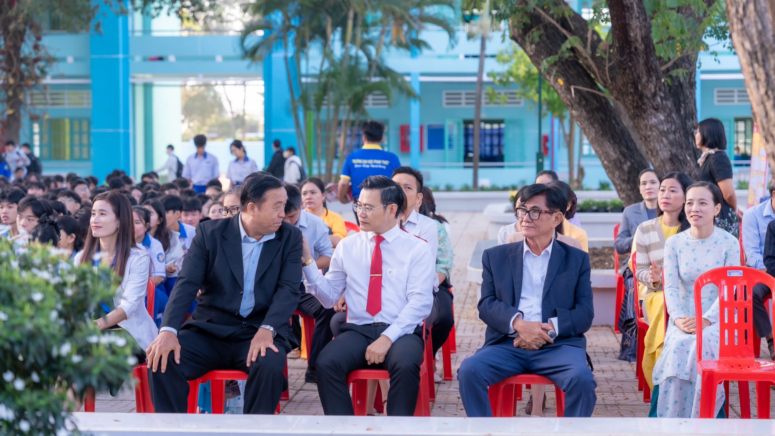 Về phía Trường THPT Hàm Thuận Bắc, có sự hiện diện của Thầy Trần Trung Toàn – Bí thư Đảng ủy – Hiệu trưởng; cùng toàn thể cán bộ, giáo viên và học sinh khối 12 trong toàn trường.