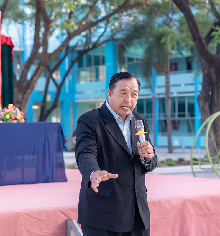 Thầy Trần Trung Toàn – Bí thư Đảng ủy – Hiệu trưởng Trường THPT Hàm Thuận Bắc phát biểu tại chương trình