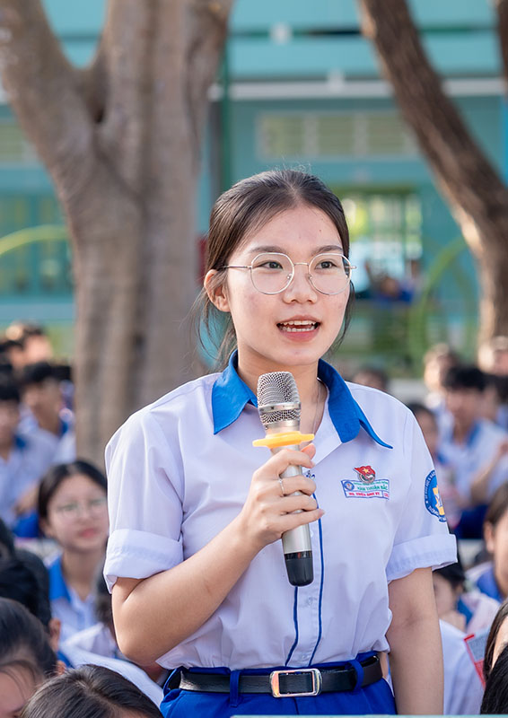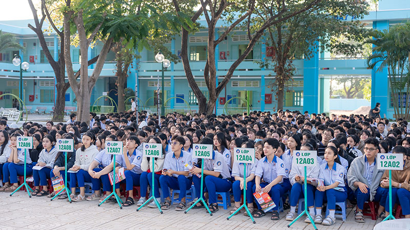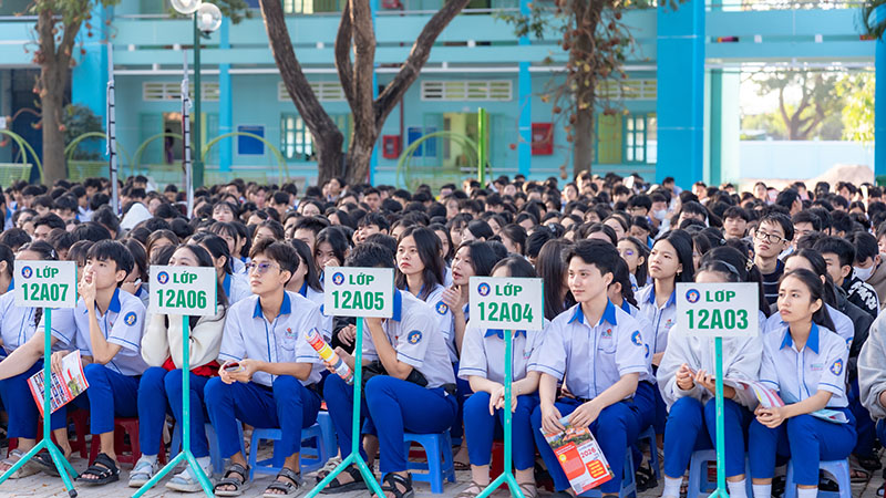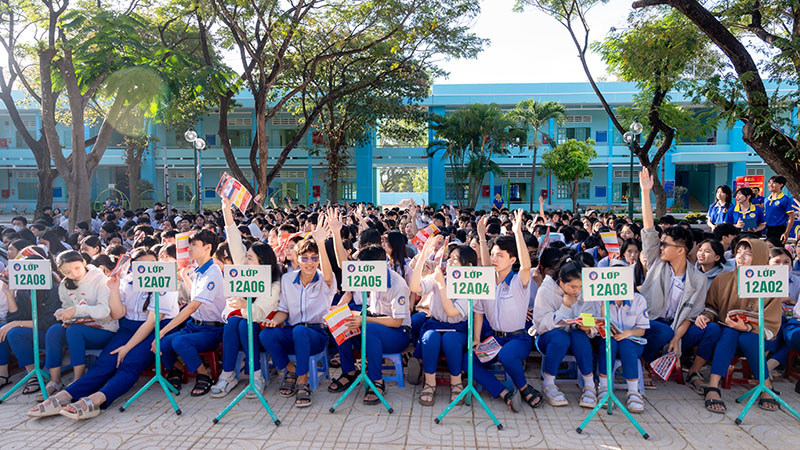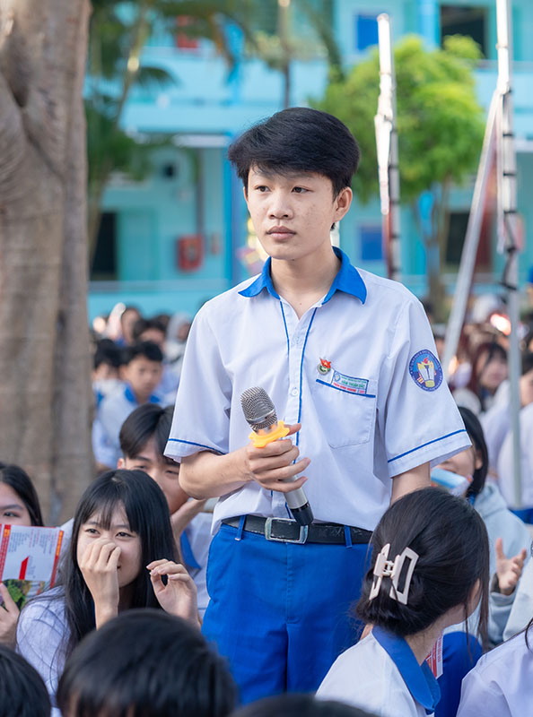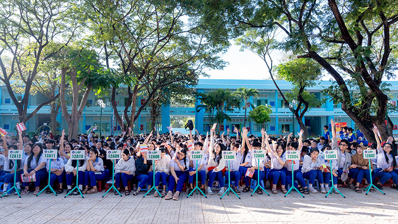 Chương trình càng trở nên sinh động khi các em học sinh tham gia giao lưu, trả lời câu hỏi và nhận quà từ Ban tổ chức. Phần ấn tượng của chương trình là lời chia sẻ của một cựu học sinh Trường THPT Hàm Thuận Bắc, hiện là sinh viên Trường Đại học Phan Thiết. Những câu chuyện chân thành về trải nghiệm học tập, cuộc sống sinh viên đã truyền cảm hứng mạnh mẽ, khích lệ các em học sinh lớp 12 tiếp tục vững bước, tự tin hơn trong hành trình lựa chọn ngành nghề tương lai.