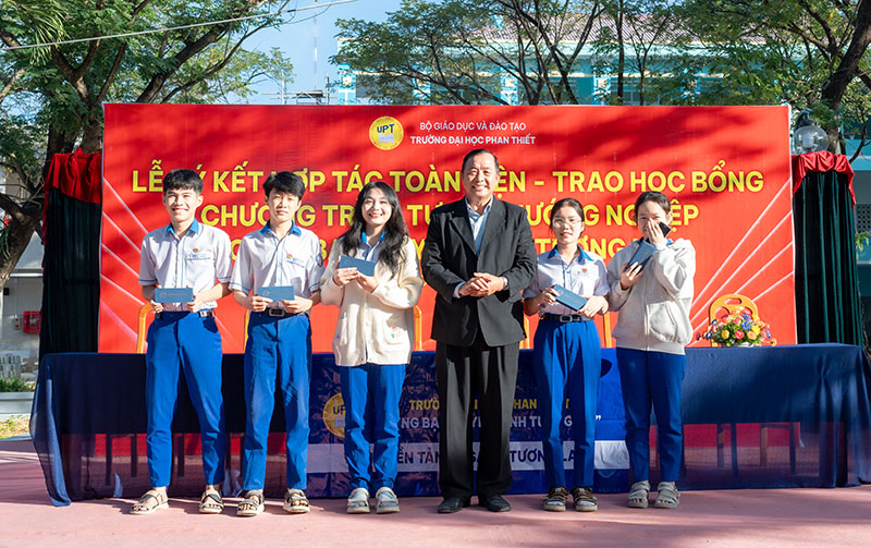 Một trong những điểm nổi bật trong buổi lễ là việc Trường Đại học Phan Thiết trao tặng 5.000.000 đồng cho quỹ học bổng của Trường THPT Hàm Thuận Bắc. UPT cũng cam kết trao tặng học bổng đầu vào không giới hạn cho học sinh Trường THPT Hàm Thuận Bắc khi đăng ký vào bất kỳ ngành nào của Trường Đại học Phan Thiết trong kỳ tuyển sinh năm 2026, với giá trị học bổng từ 3.000.000 đồng đến 50.000.000 đồng cho toàn khóa học. Đây là một dấu mốc quan trọng trong mối quan hệ hợp tác bền chặt giữa hai đơn vị, mở ra cơ hội lớn cho học sinh của Trường THPT Hàm Thuận Bắc trong hành trình tìm kiếm và phát triển nghề nghiệp.